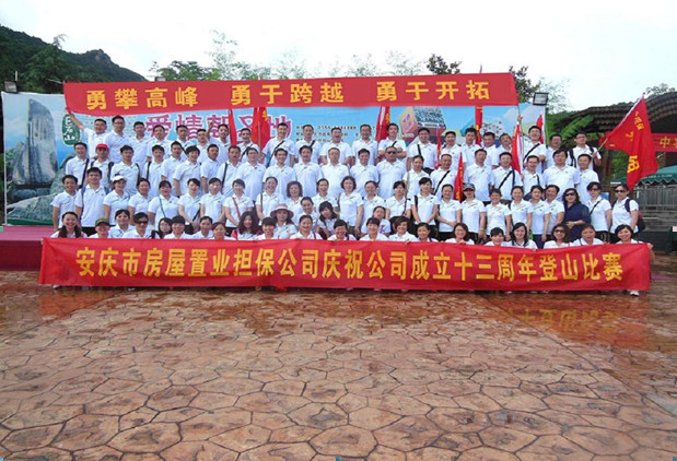 2013年6月23日,安慶市房屋置業(yè)擔(dān)保公司組織舉辦了以“勇攀高峰、勇于跨越、勇于開(kāi)拓”為主題的巨石山登山比賽活動(dòng),慶祝公司成立十三周年。